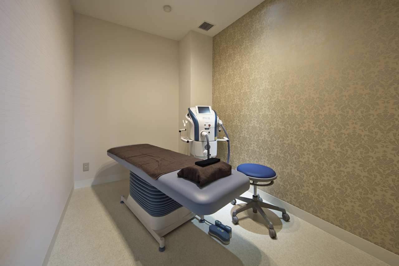 しみ、しわ、たるみなどのお肌のトラブル改善に効果的なフォトフェイシャルを行う専用ルームです。当院では、従来の施術よりも高い効果が得られる「フォトフェイシャルM22」を導入しています。